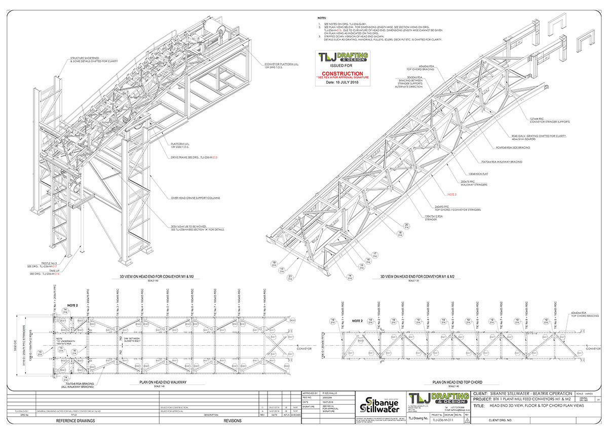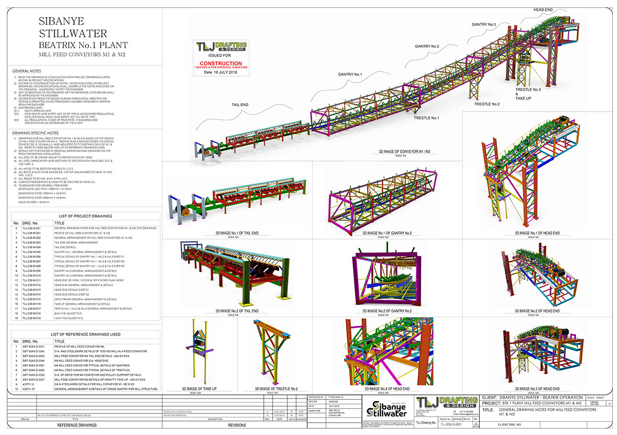 In 2018 Sibanye Stillwater decided to upgrade their mill feed conveyors at their Beatrix operation. The old conveyors were deteriorating and needed to be replaced. TLJ was tasked to produce shop detail drawings for the new mill feed conveyors.